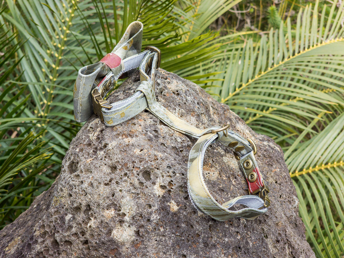 We photograph each harness carefully, but lighting and screens can make colours look a touch richer than in person. As with all dyed textiles and leather, colour will mellow gradually with UV exposure; with typical use (~30–60 minutes a day), we find fading is minimal. Using plant-based dyes and gentle processes means that a natural patina will develop over time.